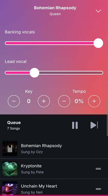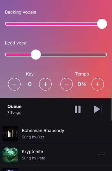 Facility to activate the vocal guide, backing vocals and customise the key and tempo of any track in our catalogue to perfectly fit with your voice!